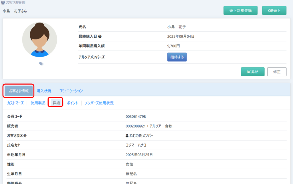 これまで「詳細表示」ボタンから見えていた、お客さまの詳細情報は