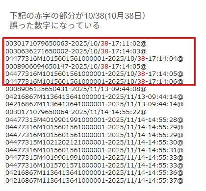 調査の結果、バーコードリーダーから不正な日付が入力された際にエラーが発生し、