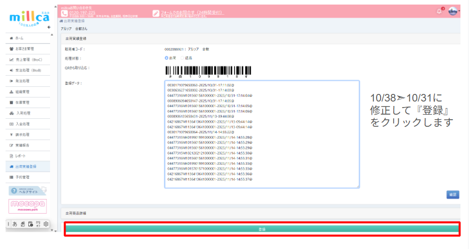 ①出荷実績登録の際、確認ボタンを押すと「通信にエラーが発生しました」と表示され登録ができません。