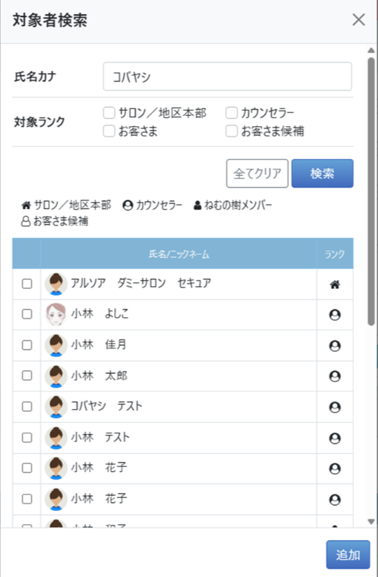 LINE連携を行っている組織とお客さまを検索できるように修正しました。